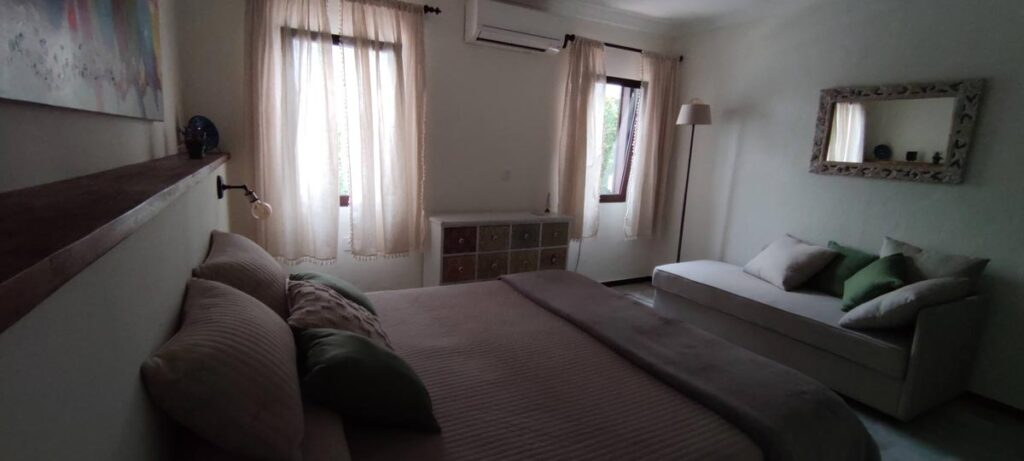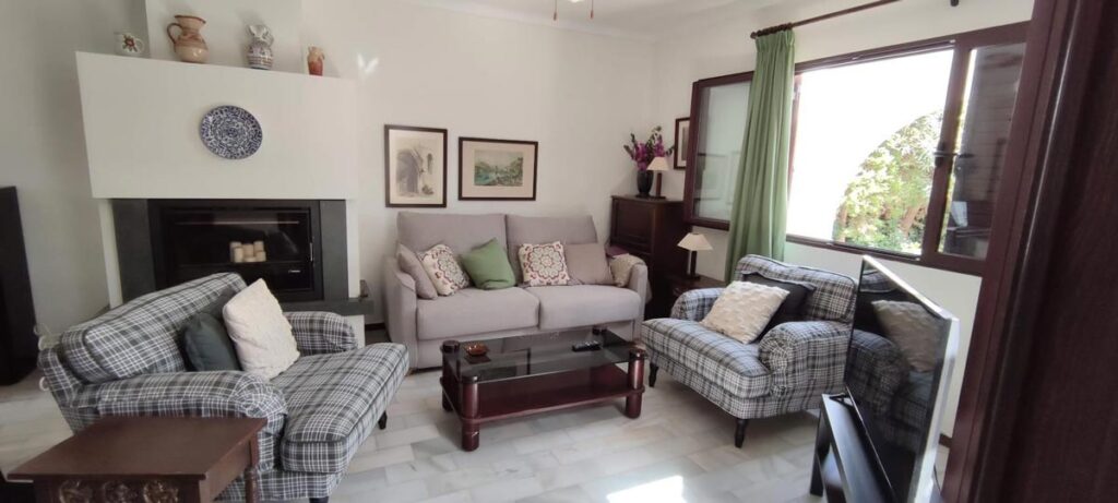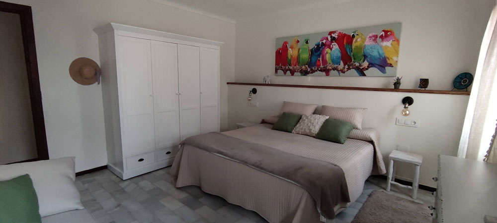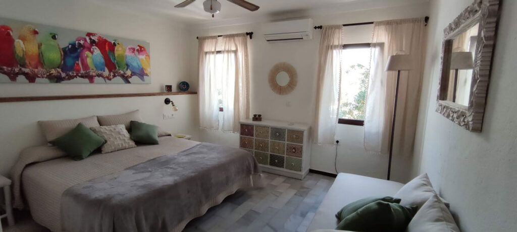 Casa unifamiliar de 100 m2 en una planta. Cuenta con 3 habitaciones dobles con aire acondicionado y 2 baños completos con ducha; salón comedor y cocina equipada. Rodeada por amplios porches para usar como comedor, salón de lectura… La terraza de 100 m2 ofrece excelentes vistas sobre la urbanización Molino Blanco. Idónea para estancias de familias que buscan tranquilidad y privacidad. Remodelada en 2021 tiene piscina salina y barbacoa.